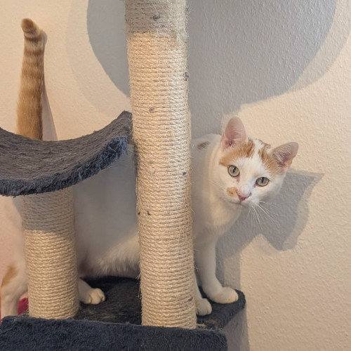 Rocky, der rot-weiße Kater, ist anfangs etwas schüchterner, taut aber schnell auf.